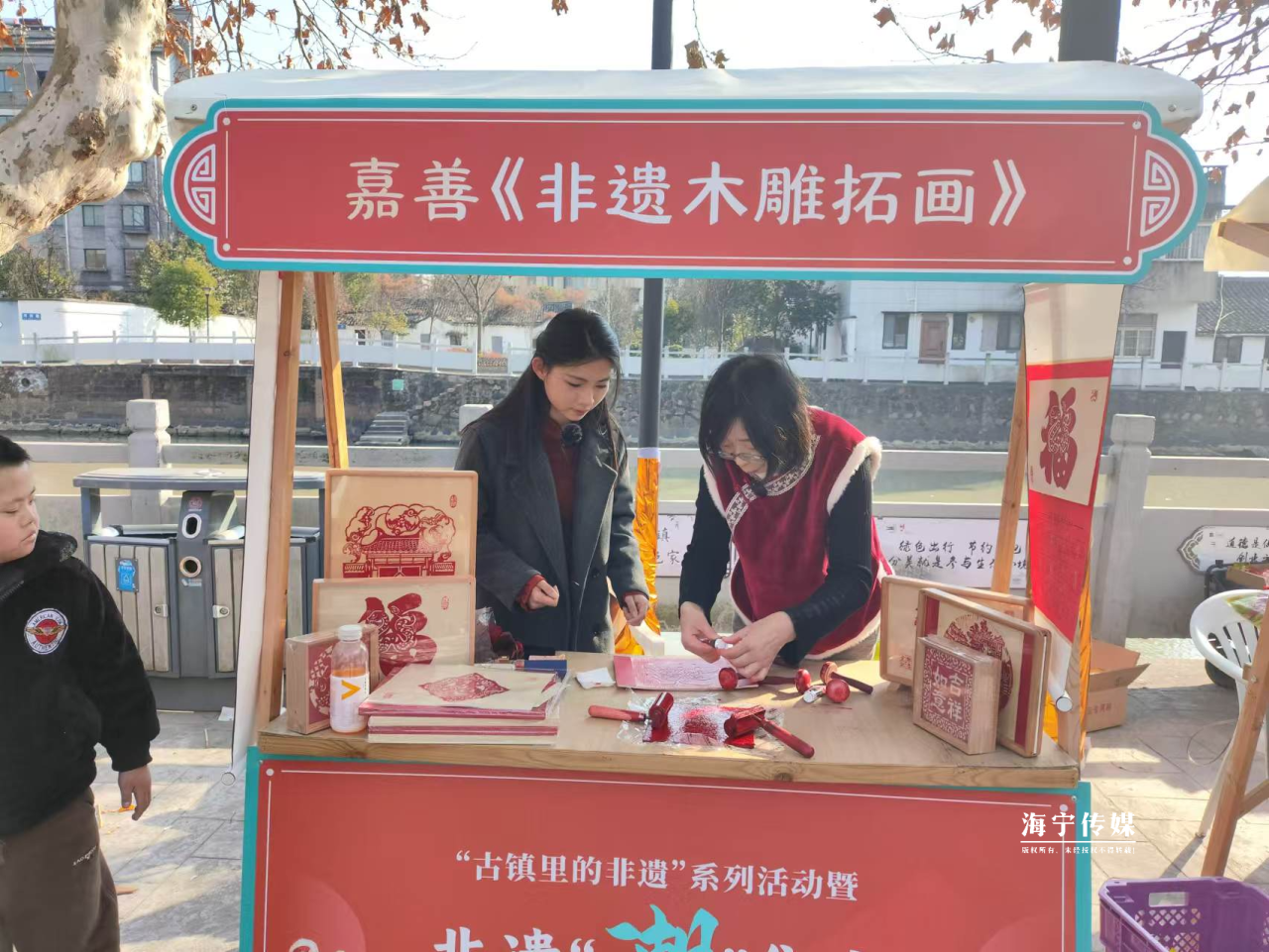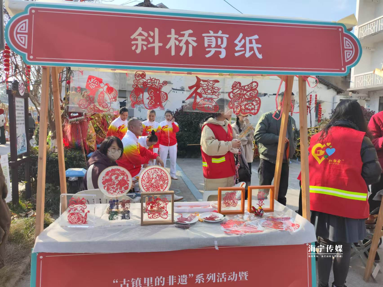 活动持续两天。活动现场设有非遗“潮”集市,汇集了嘉兴各地和海宁斜桥本地的特色非遗年货,吸引了众多市民前来选购。